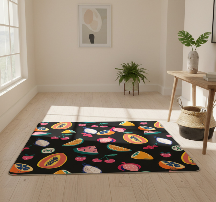 Nature vinyl rug with vibrant fruits on black