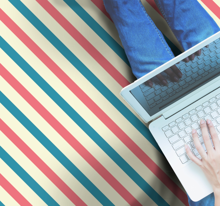 Introducing our stunning Striped vinyl rug with abstract color diagonals, a perfect blend of style and functionality! This eye-catching piece features a captivating design with vibrant stripes, a stripy pattern in shades of blue, pink, and cream. The abstract color diagonals create a dynamic visual appeal that transforms any space into a modern oasis!