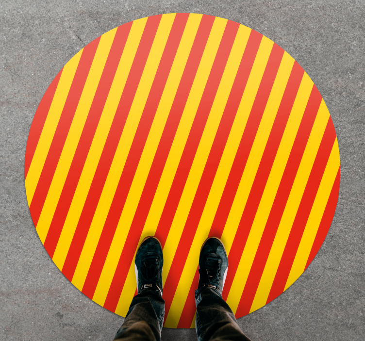 Brighten up your space with the striped vinyl rug vibrant striped display! This stunning rug features a captivating design of vertical lines in vibrant red and yellow that create an eye-catching graphic appeal. It's the perfect addition to any room, bringing energy and style while enhancing your décor.