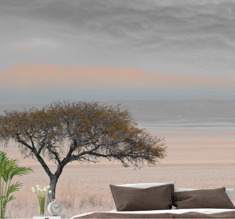This stunning wallpaper mural features a beautiful nature landscape that captures the essence of the African savannah. The centerpiece of the design is a majestic African tree that stands out against the plain landscape. With its rich colours and intricate details, this mural is sure to become the focal point of any room.