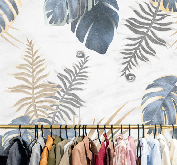 Blue tropical plans white background nature murals