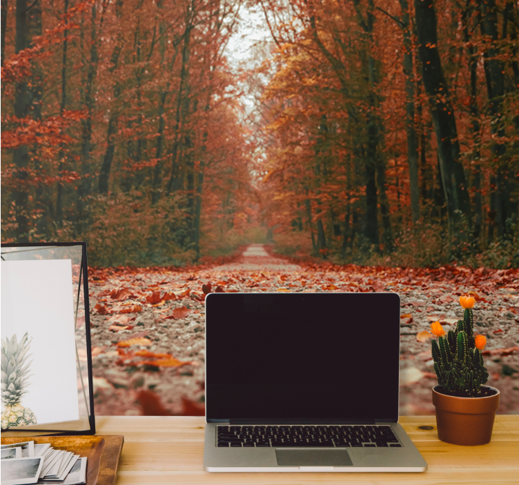 Transform your space with our stunning Forest wall mural autumn pathway trail. This enchanting design captures the essence of a serene woodland, featuring a winding path embraced by a tapestry of vibrant autumn leaves. The depth of the forest scene invites you to step into nature, creating a warm and inviting atmosphere that celebrates the beauty of fall.
