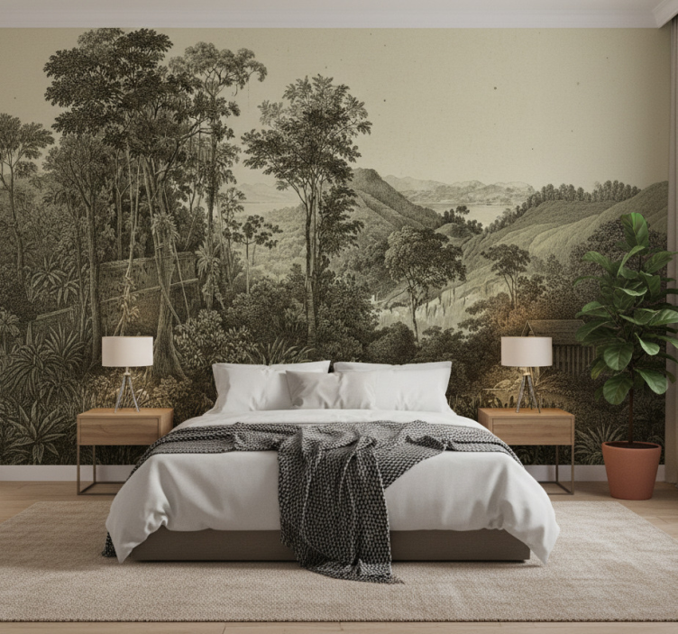 Applying the Forest wall mural hilly forest print forest wall mural is a straightforward process! Simply use glue on the wall or the product itself, and you will need a roller, a brush, and a cutter for a seamless finish. With just a few tools, you can transform your space effortlessly!