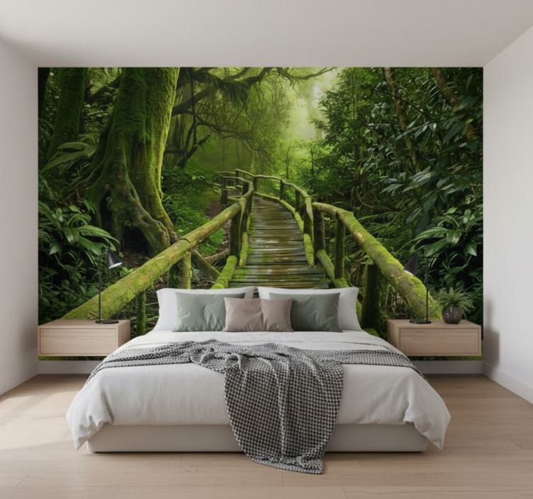 The Forest wall mural lush mossy boardwalk forest wall mural serves as a breathtaking focal point in your home, inspiring a sense of calm and tranquility. Imagine walking into a room where the beauty of nature surrounds you, creating a serene environment perfect for relaxation. This mural invites the outdoors in, making it an exceptional choice for those who wish to enhance their decor with the calming presence of nature!