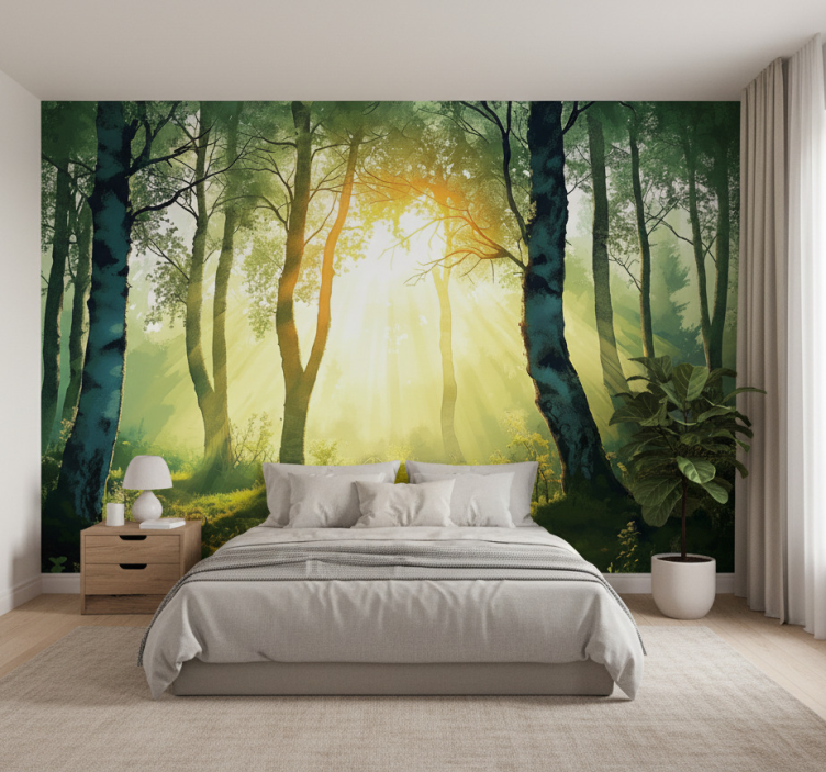 Applying the Forest wall mural sun-drenched birch design forest wall mural is a breeze! Simply use glue on the wall or directly on the product, and with the right tools—like a roller, a brush, and a cutter—you can easily transform your space in no time. Enjoy the satisfaction of a beautifully decorated wall!