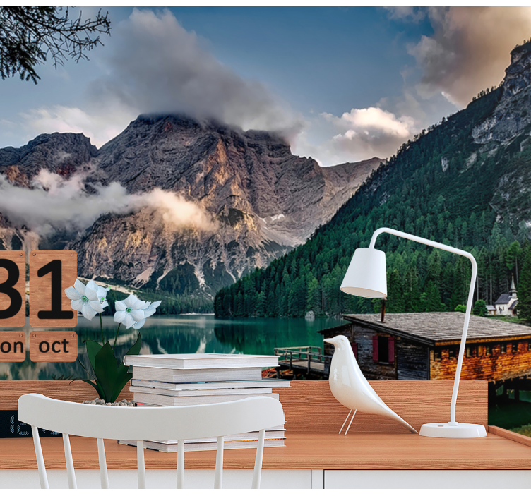 Landscape wall mural mountain lake getaway