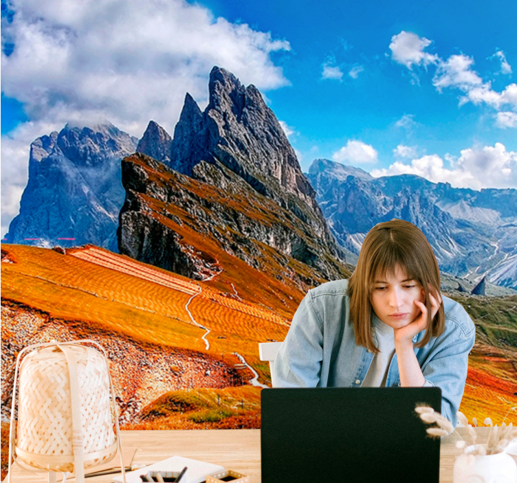 Transform your space with our stunning Landscape wall mural mountain peaks view. This captivating design showcases rugged rocky mountains, gentle hills, and billowy clouds that create a serene nature-inspired atmosphere. Each element harmoniously blends together to evoke a sense of tranquility and adventure, making it perfect for any room in your home!