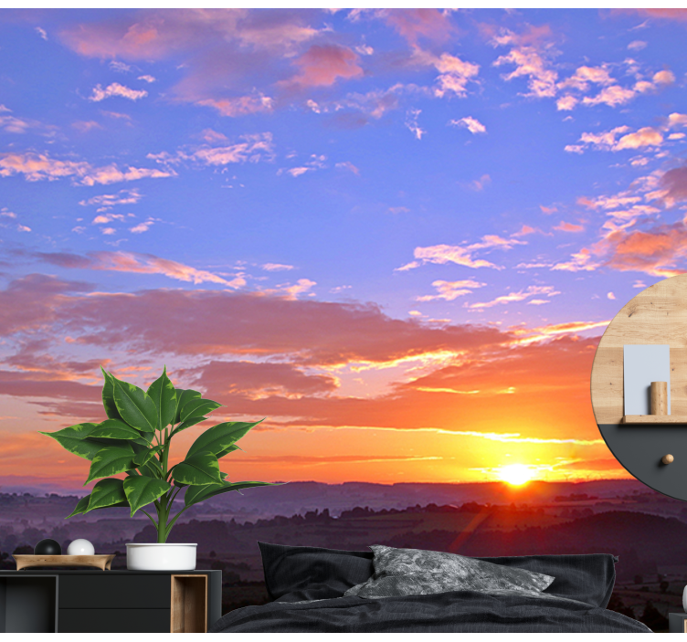 Transform your space with our stunning Landscape wall mural sunset over hills, where the captivating beauty of nature comes to life. This exquisite design features a breathtaking sky, fluffy clouds, majestic mountains, and a serene horizon, all harmoniously blended to create an enchanting landscape that embodies tranquility. Each glance at this mural evokes the soothing essence of a sunset over rolling hills, perfectly capturing the essence of natural beauty and photography.