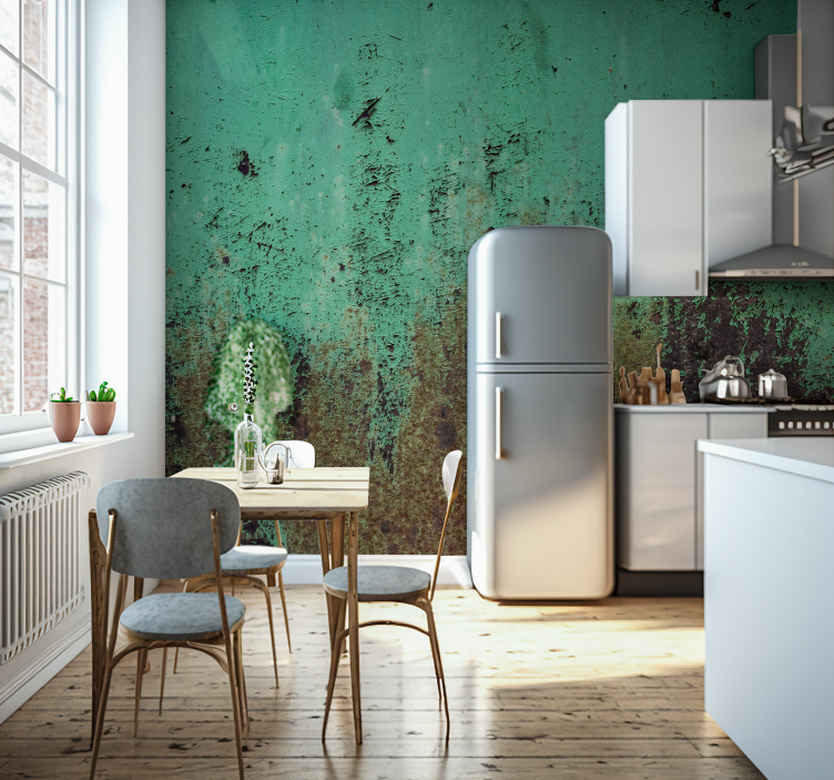 Our Rusty Green Wall wallpaper photo is the perfect way to add a touch of industrial style to your space. The rusted, old metal look creates a unique and edgy atmosphere that will impress your guests. Whether you're decorating a home or office, this wall mural is a standout choice. Let your creativity run wild!How to Apply Our Rusty Green Wall Wall Mural