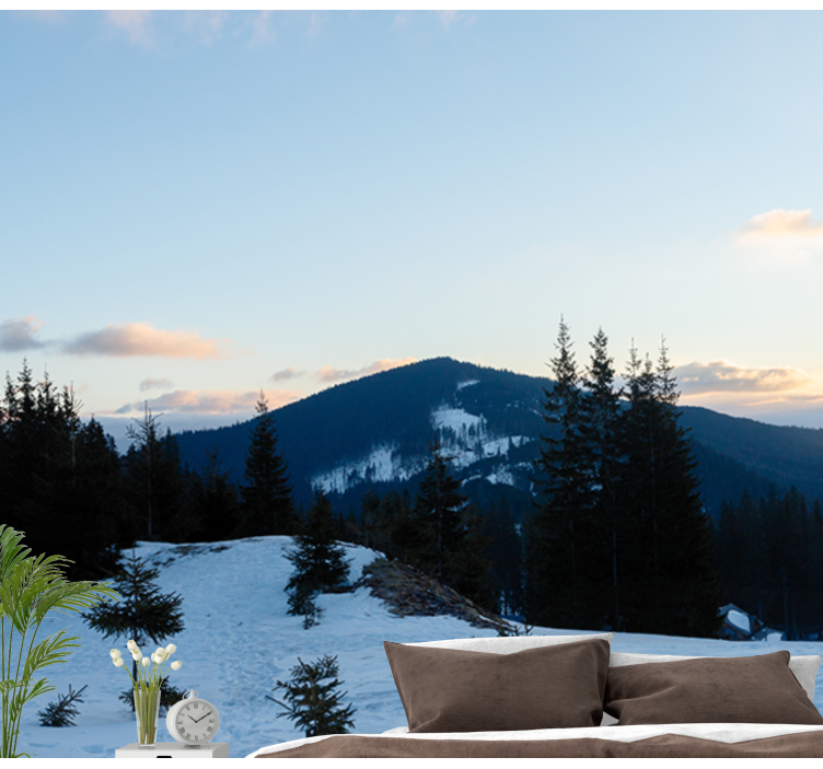 Transform your space with our stunning Wall mural mountain frosty summit landscape. This captivating design features majestic mountains blanketed in pristine snow, towering trees, and the enchanting aura of winter in the Alps. The breathtaking photography captures the serene beauty of nature, inviting the tranquility of a frosty summit landscape into your home. Gaze at the clear sky, and let this mural transport you to the enchanting landscapes of France!