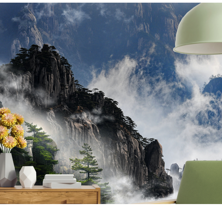 Transform your living space with our stunning Wall mural nature mountain fog landscape. This captivating design features majestic mountains peeking through a blanket of fog, complemented by a serene sky and wispy clouds. The breathtaking photography captures the essence of nature, inviting tranquility and beauty into any room. With trees framing the scene, this mural embodies the harmony of the natural world, making it a perfect addition to your home.