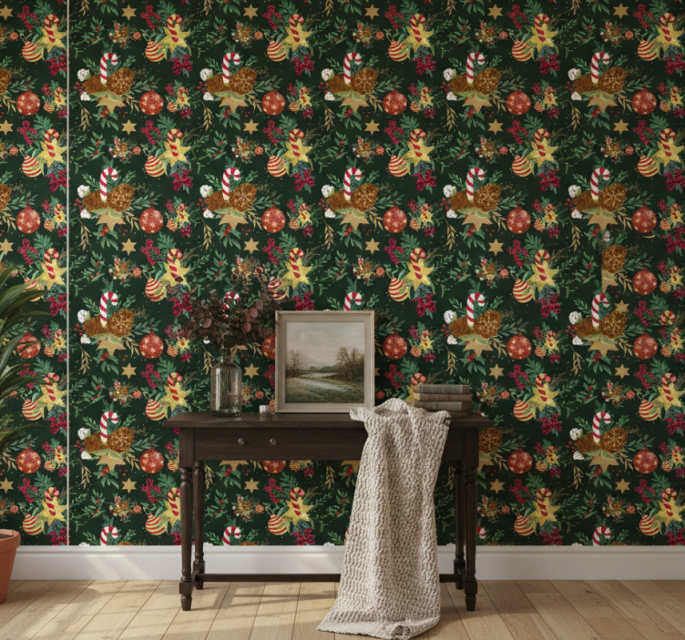 Reference: P12271Transform your hallway into a festive wonderland with our Hallway wallpaper festive candy design. This delightful design features charming candy motifs in vibrant, matt colours, creating an inviting atmosphere that brings joy and warmth to any space. With its non-woven material, this wallpaper is not only visually stunning but also durable, promising a lifespan of 10-15 years. Imagine the smiles on your guests' faces as they stroll through your candy-inspired hallway!