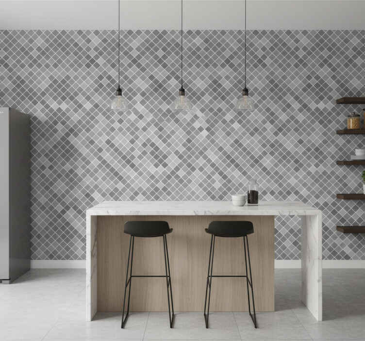 Tile effect wallpaper in gray tones squared pattern